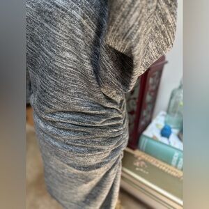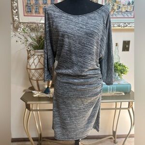 MAX STUDIO HEATHER GRAY KNIT SILVER METALLIC RUCHED BATWING SLEEVE DRESS SZ L