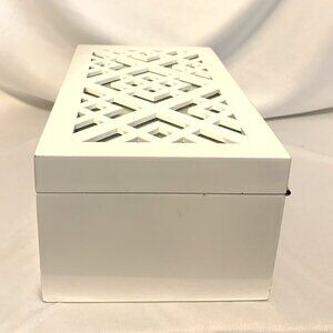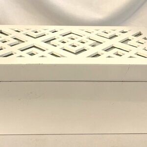 MAX STUDIO HOME Jewelry Box White w/Diamond Cut Out & Mirror Top