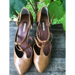 MAX STUDIO Hidden Platform Leather Brown Mary Janes Heels Sz 9.5 M