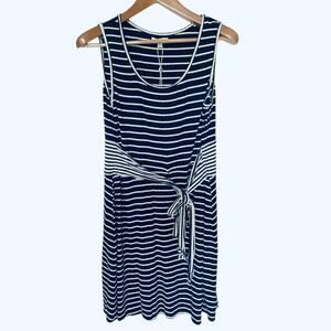 Max Studio's striped tank dress is your casual warm-weather solution. In a cozy stretch knit, it's fitted with a self-tie waist and loose fabric at the skirt to create an effortless and breathable style.