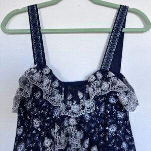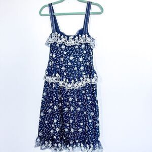 MAX STUDIO LONDON Boho Navy Floral Lace Ruffle Mini Dress size Small