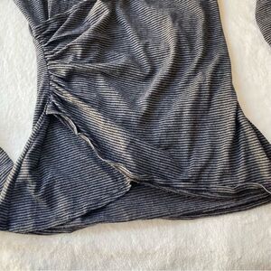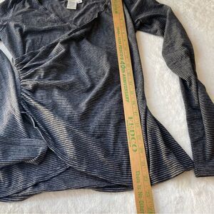 MAX STUDIO Long Sleeve Ruched Faux Wrap Top - Gray Striped Size Small