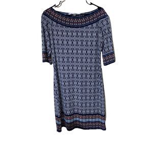 MAX STUDIO Mixed Print Sheath Dress L Blue Stretch Travel Knit