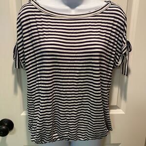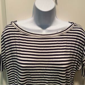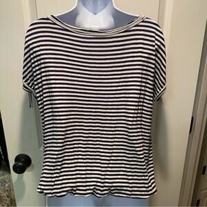 MAX STUDIO NAVY & WHITE STRIPPED SHORT SLEEVE TOP SIZE SMALL