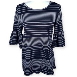 MAX STUDIO NAVY & WHITE STRIPE TOP W/BELL SLEEVES SZ.S EUC. GORGEOUS TOP IN EXCELLENT USED CONDITION LIKE NEW.