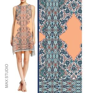 MAX STUDIO | NWOT SCARF PRINT SLEEVELESS SHIFT DRESS PEACH FLORAL | SIZE: SMALL