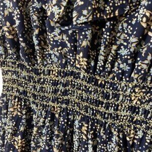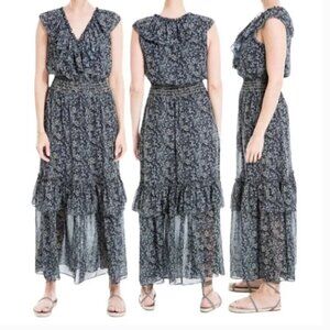 MAX STUDIO Navy Blue Floral Ruffled Georgette V-Neck Sleeveless Maxi Dress
