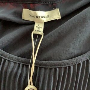MAX STUDIO Navy Blue Silky 3/4 Sleeve Blouson Blouse