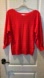 This bold red sweater features a soft relaxed fit and a wide scoop neckline, making it a stylish choice for casual wear or layering. The long sleeves have a slightly gathered effect at the cuffs, adding a touch of elegance to its comfortable design.