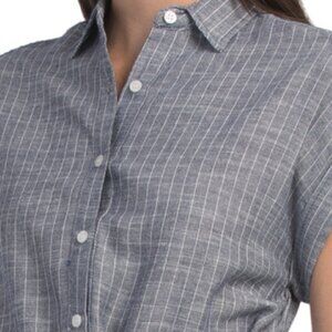 tiered skirt, half button front, fixed rolled cuffs, 2 front pockets, tie waist