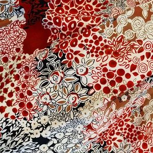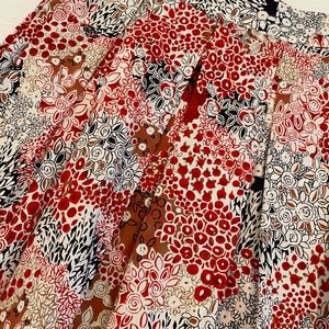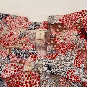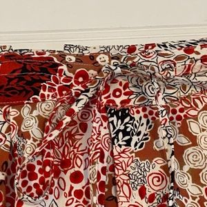 MAX STUDIO BLACK RED CREAM FLORAL PRINT COTTON SKIRT GATHERED WITH DRAWSTRING TIE IN BACK FRONT PANEL WRAP WITH 2 FRONT HIDDEN POCKETS PERFECT FOR THE SUMMER WAIST IS ADJUSTABLE WITH DRAWSTRING LENGTH WAIST TO HEM 23 1/2" NEW WITHOUT TAG