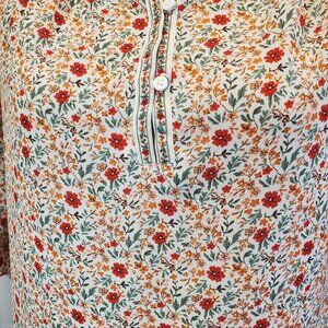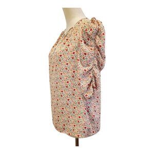 In excellent condition this top is super cute. Loose fit with an open 3 button neckline and ruched sleeves.