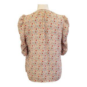 Cream, Red, Green Floral 1/2 Sleeve Blouse