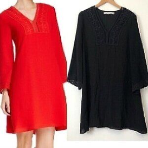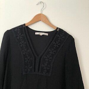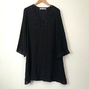 MAX STUDIO Solid Black Crochet Lace Flare / Bell Sleeve Boho Shift Dress Small