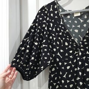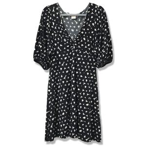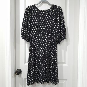 MAX STUDIO Vintage Black White Abstract Puff Sleeve Vneck Dress, Witchy, M
