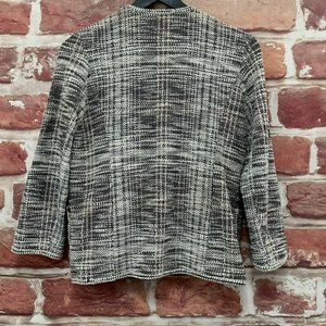 MAX STUDIO WOMEN'S WHITE & BLACK TWEED SWEATER CARDIGAN BLAZER JACKET