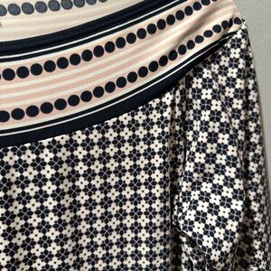 This NEW with tags attached dress, features a geometric floral print in a vibrant multicolor palette, with a boat neckline, short sleeves, and a straight sleeve type.