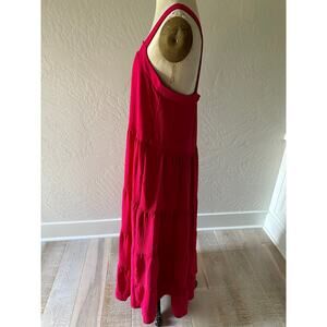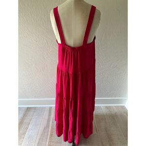 MAX STUDIO | Women's Cerise Red Square Neck Tiered Maxi Sun Dress 3903P58 Medium