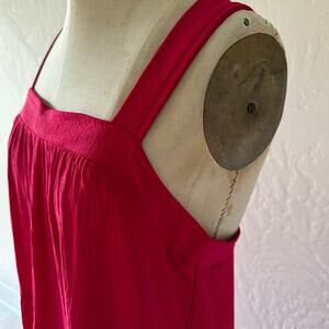 A stylish square neck flattering neckline and flowy mid-weight crepe construction completes this chic maxi length sun dress. The beautiful cerise red color is unique & eye-catching. Ready for your next warm weather vacation.