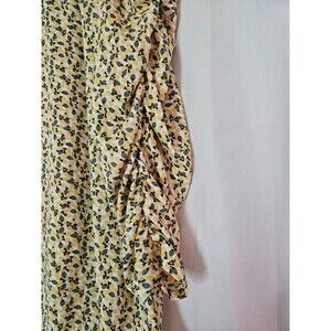 MAX STUDIO Yellow Gray Print Stretch Shirred Sleeve Peasant Top 1X NWOT