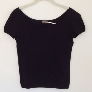 Beautiful and flattering black knit top with wide neck and cap sleeves🌟perfect on its own or layered🌟great with jeans or silk🌟PERFECT CONDITION