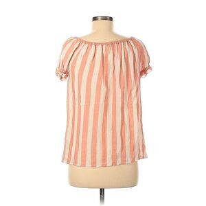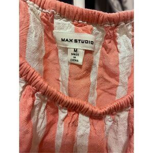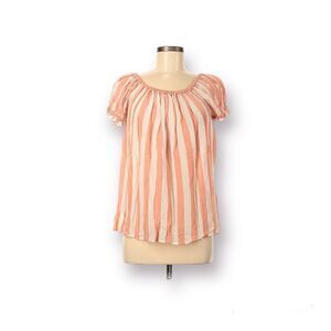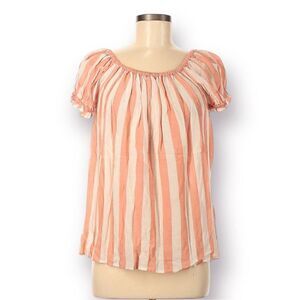 Max Studio Women Short Sleeve Pink White Striped Blouse M
