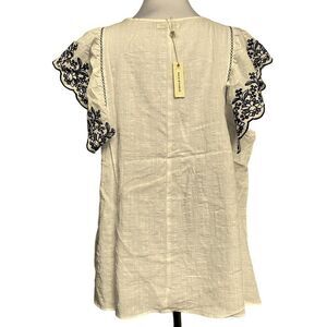 MAX STUDIO White Embroidered Flutter Sleeve Peasant Blouse Pullover 1X NEW