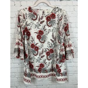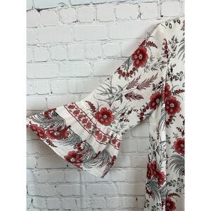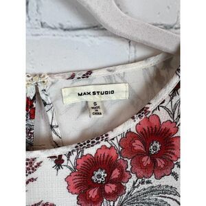MAX STUDIO white red floral circular flounce sleeve blouse top size S