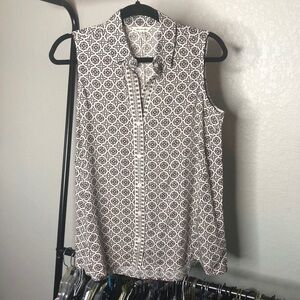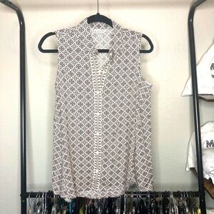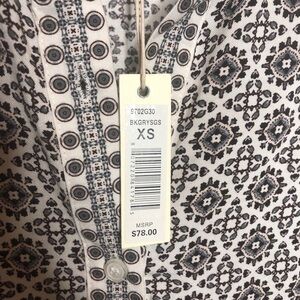 Brand new with tags. No holes or stains. White with dark gray and black print.