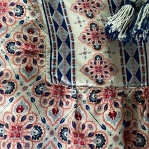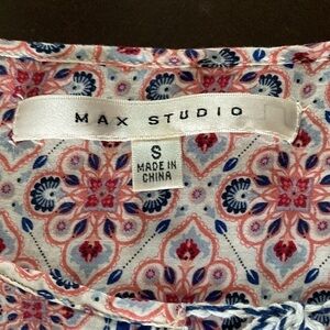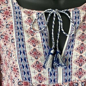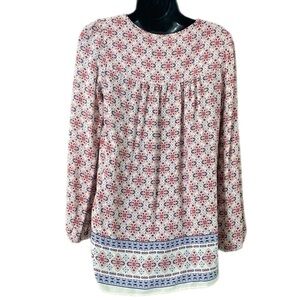 MAX Studio Long Sleeve with Tassle Boho Print Tunic Blouse Shirt Size Small