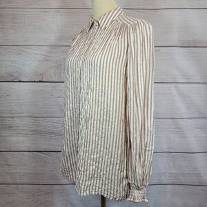 MAX Studio Striped Collared Button Up Long Sleeve Tunic Top Size Medium
