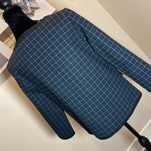 Great professional wardrobe top and super Spring-y with the green and gray plaid print. And has a cute body fit.