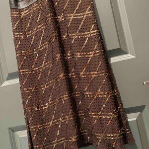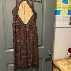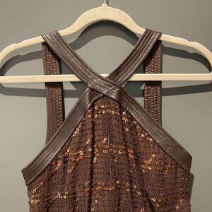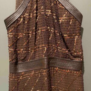 Leather straps, bronze sequins, back zipper, size 6. lined.