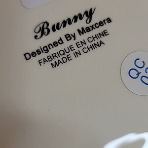 MAXCERA Easter Bunny Rabbit Large 12" White Scalloped Serving Bowl Spring