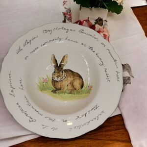 MAXCERA Easter Bunny Rabbit Large White Scalloped Edge Serving Bowl Spring