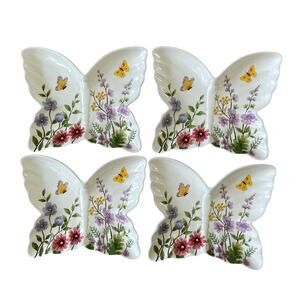 MAXCERA Spring Floral Butterfly Shaped Ceramic Dinner Plates 11x9 Set of 4 New