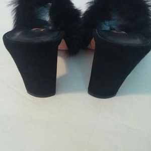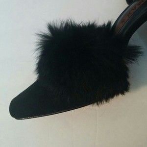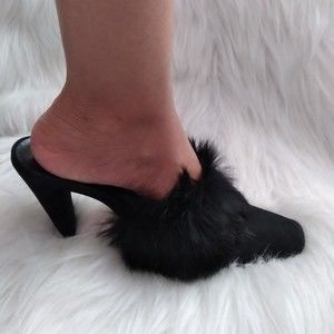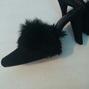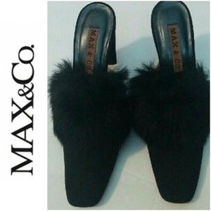 MAX&Co Fur Mules REAL FUR Trim Suede Uppers BLACK 4" HEELS WOMENS 35 IT