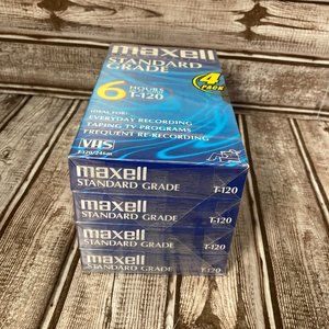 MAXELL 4 PACK 6 Hours T-120 Blank Standard Grade VHS Tapes Brand NEW SEALED
