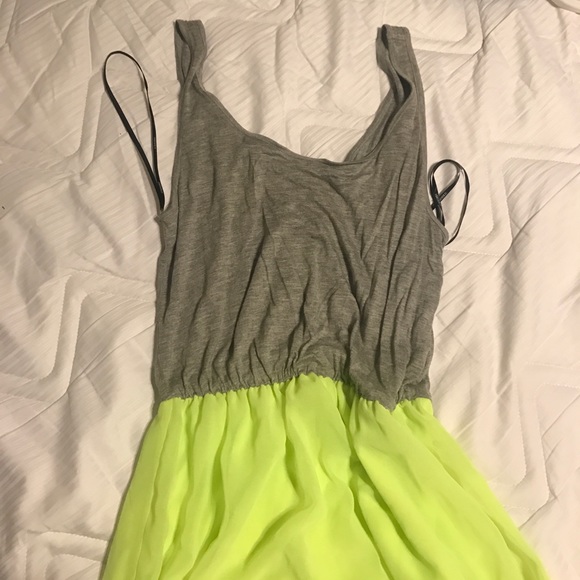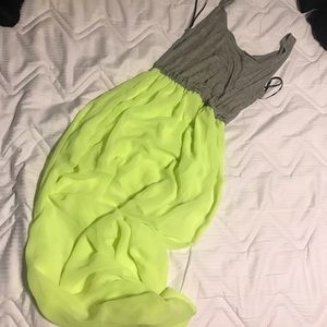 FLOOR LENGTH MAXI DRESS. Light gray tank top part with a neon yellow colored skirt. Has a knee length slip underneath. SUPER CUTE FOR THE SUMMER! Forever 21 Size Small.