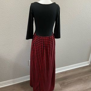 MAXI DRESS SIZE SMALL BLACK AND RED WORN ONCE, EXCELLENT LIKE NEW CONDITION SMOKE FREE, DOODLE FRIENDLY HOME