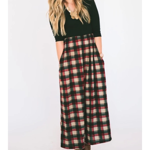 MAXI DRESS SIZE SMALL BLACK TOP, PLAID SKIRT WORN ONCE EXCELLENT CONDITION SMOKE FREE, DOODLE FRIENDLY HOME