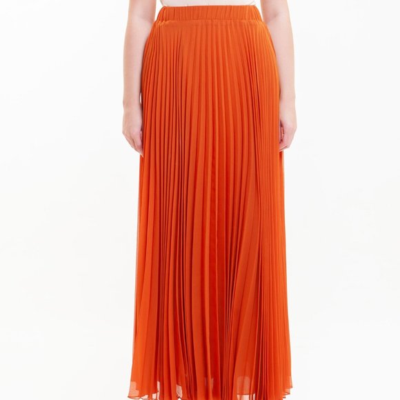Not worn maxi pleated skirt in orange color. It is perfect for spring/summer as the skirt is made out of chiffon material.