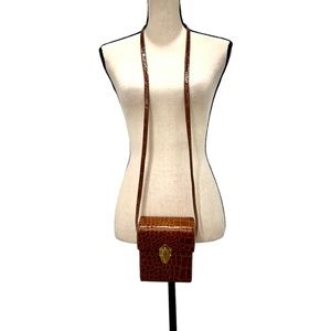 MAXIMA MADE IN ITALY BROWN ALLIGATOR MINI CROSSBODY HARD CASE
