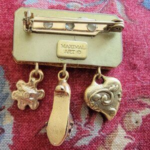 MAXIMAL ART PIN "SISTERS" CRYSTALS HEART & SHOE CHARMS JOHN WIND VINTAGE JEWELRY