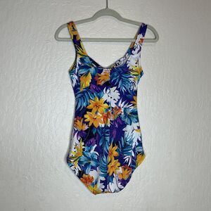 MAXINE OF HOLLYWOOD Floral One Piece USA Built-in Bra Lined Swimsuit