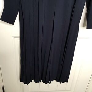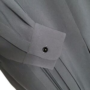 Lightweight V-neck cady jumpsuit with cuff-long sleeves and wide-leg pleated coulisse bottoms. Back zipper and pockets.