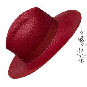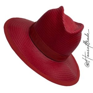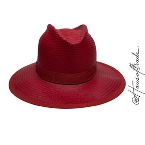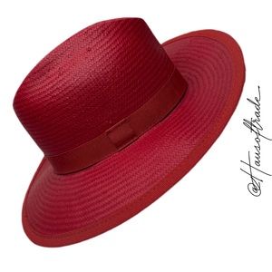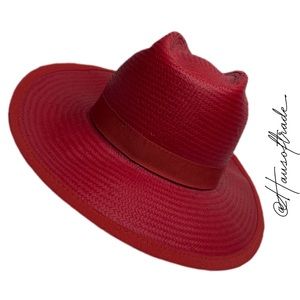RED sold out completely. Pair it with any outfit and you’ll turn heads everywhere! Model in photo is wearing same hat in taupe.