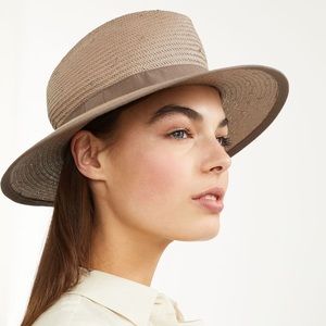 A luxury Italian hat by MaxMara, handmade with fine details such as ribbon trim and ribbon lined edges.