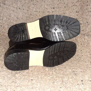 Full black patent leather Chelsea boots - leather upper, inner and leather bottom with rubber toes and heels.