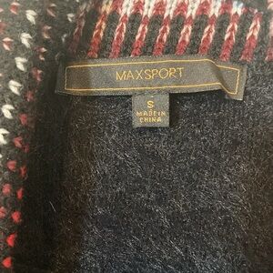 Features: Long Cardigan, Aztec, Tribal, Boho, Festival, Super Soft, Fringe Hem, Open Front, Sweater, Eyelash Sweater, 65% Acrylic, 20% Nylon, 15% Viscose, BCBGMaxAzaria, Black, Red